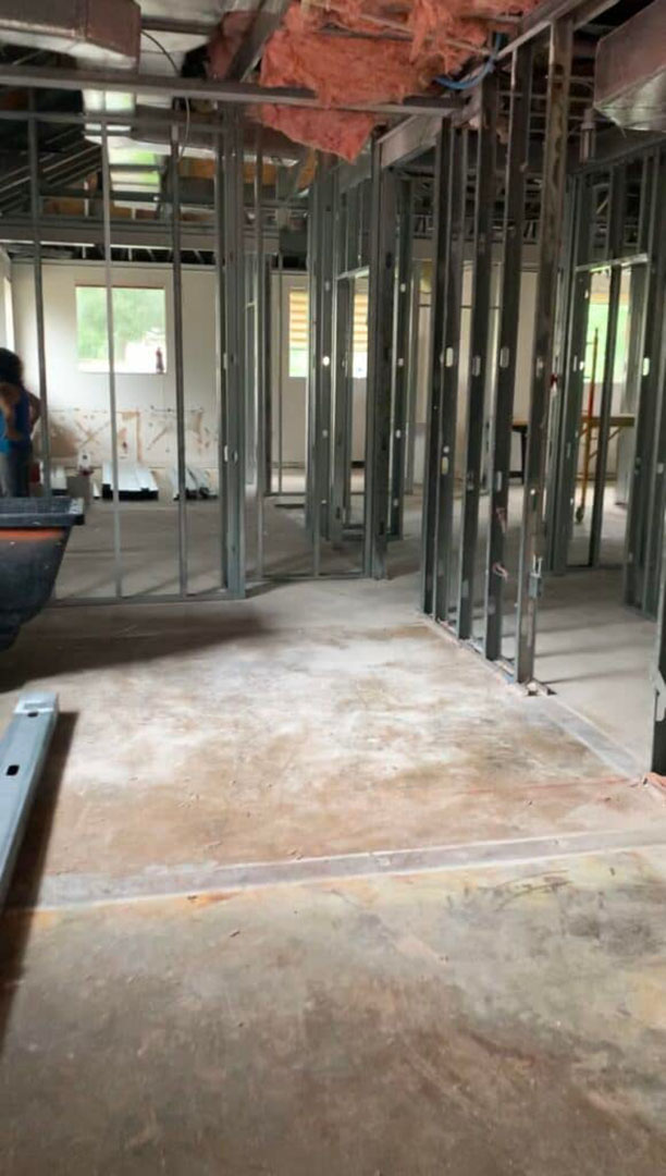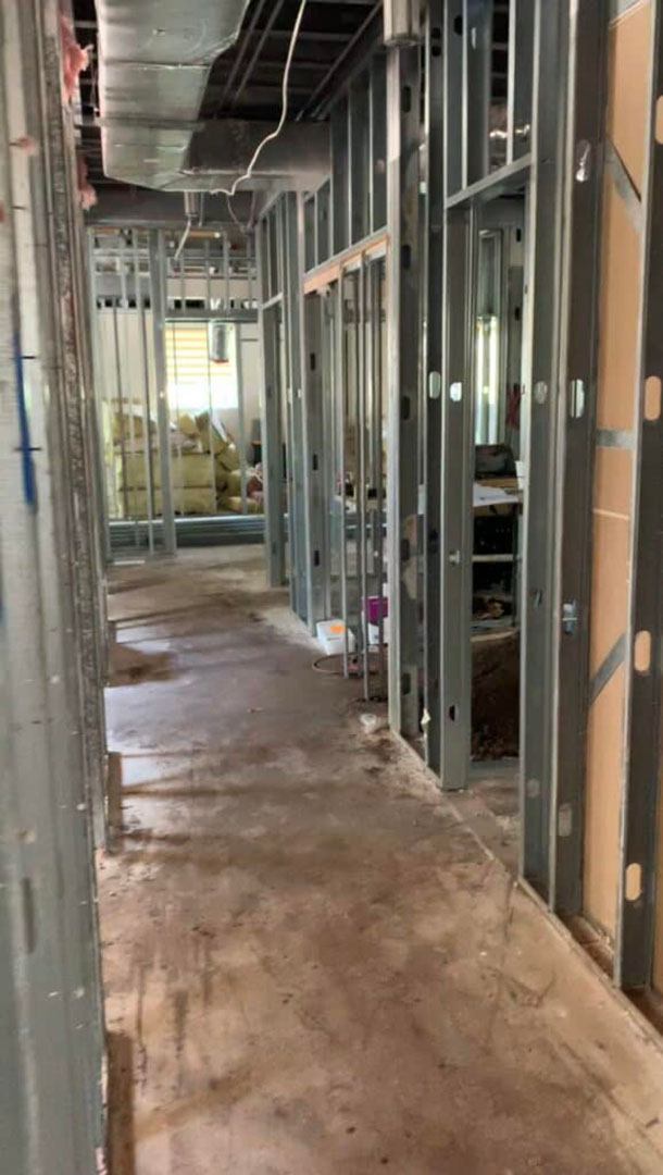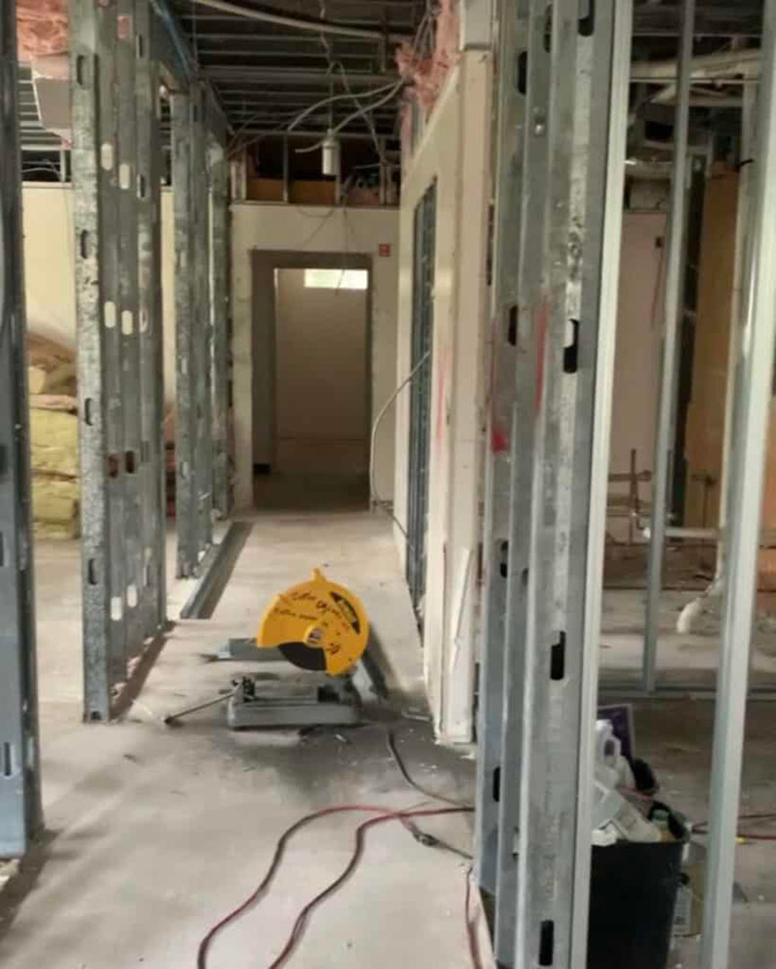 Renovation construction began in the new office.