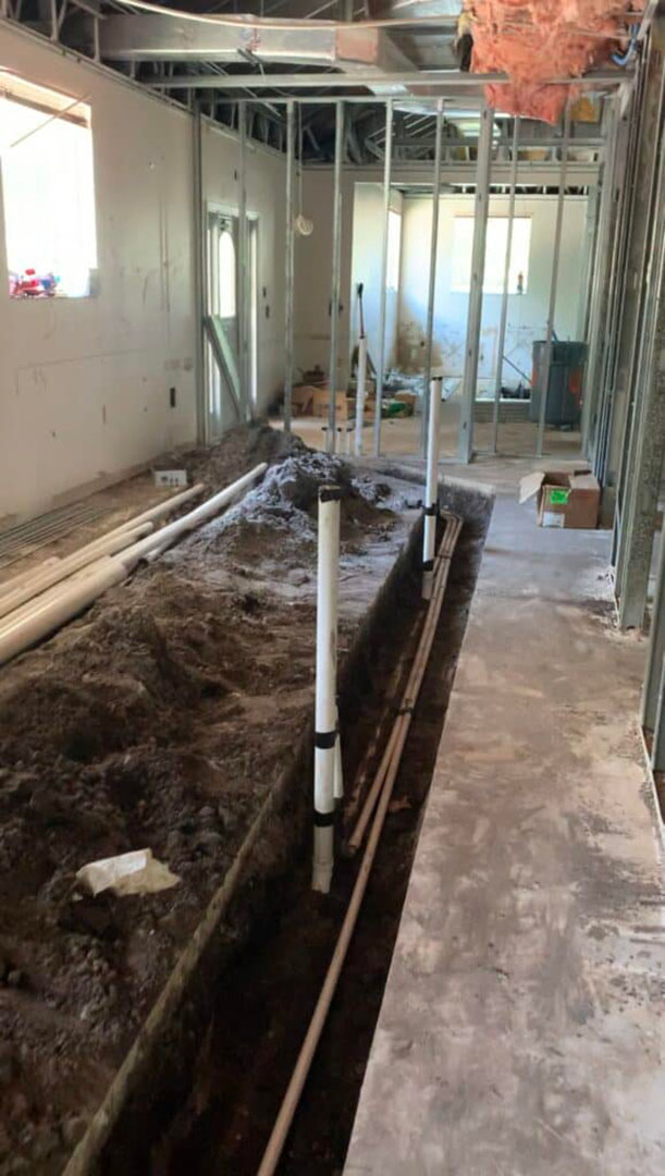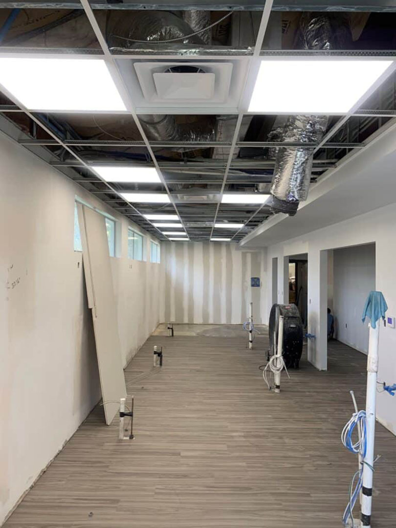 Plumbing, electrical, med gas, and drywall installed.