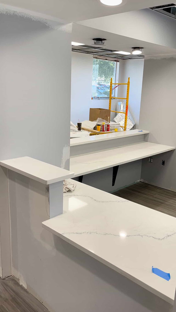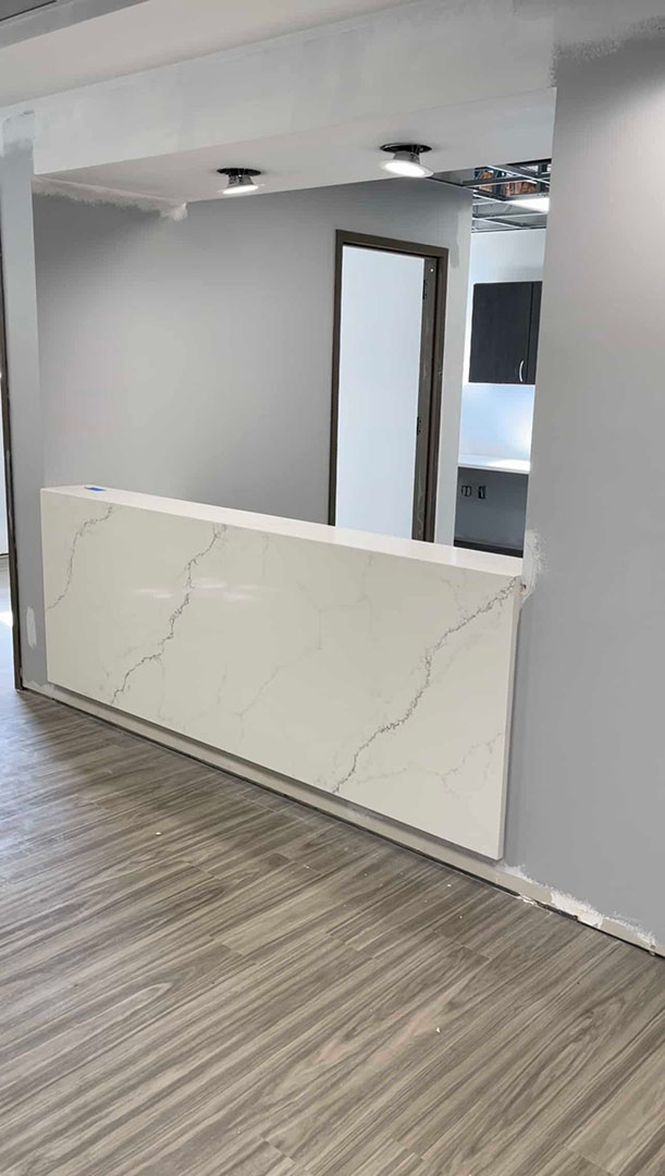 Calcutta Quartz front desk installed.